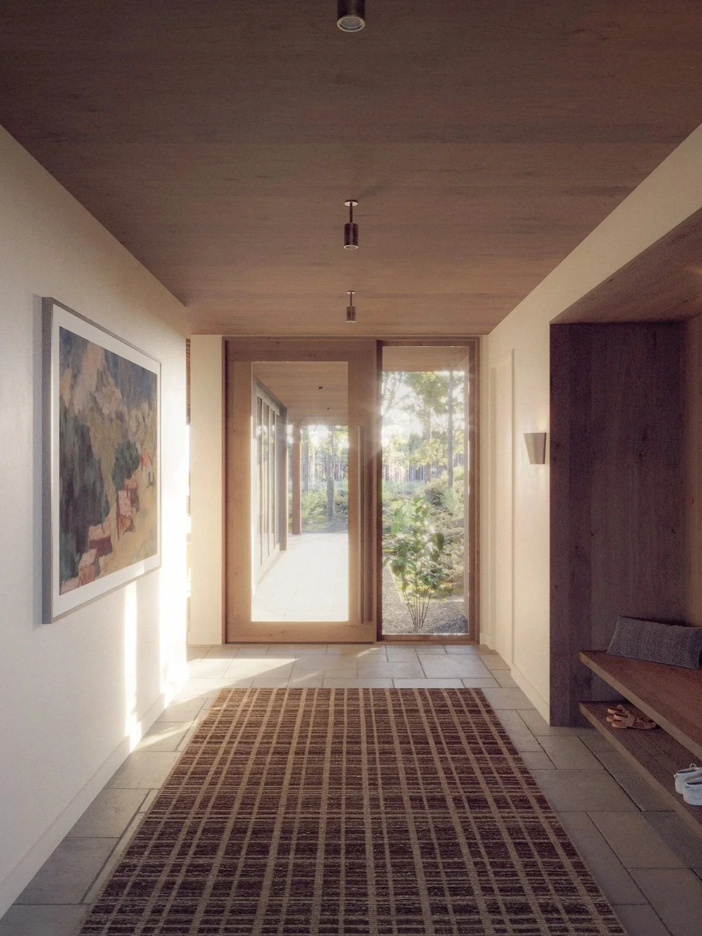 Located deep in the piney woods, at Dream Golf’s new resort Wild Spring Dunes, this low slung house creates intimate moments of compression and release while providing long views to ravines from every room.